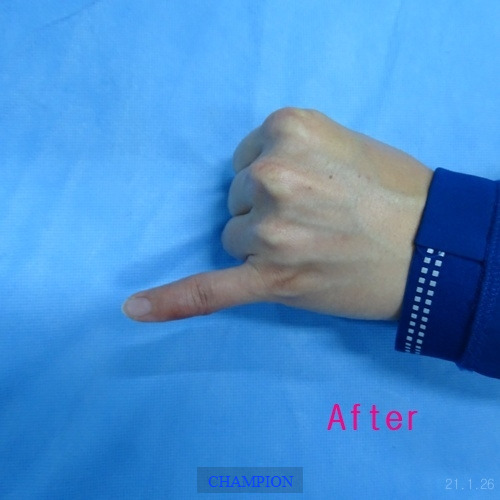 “오래된 휜 손가락 때문에 글쓰기도 어려웠는데 부분마취 후 수면으로 순식간에 끝났고 수술 직후 모양이 바로 펴졌어요.”